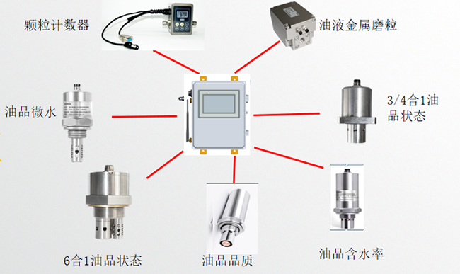本系統集成了多種技術先進的在線油液傳感器,可監測潤滑油粘度、密度、溫度、介電常數、水分、金屬磨粒、污染度傳感器等等多種潤滑油的理化指標、污染度指標、金屬磨粒指標。能判斷設備早期故障和及時提醒用戶,與傳統的時間表相比,可以采取更低成本的保養措施,實現為設備長久穩定運行保駕護航。